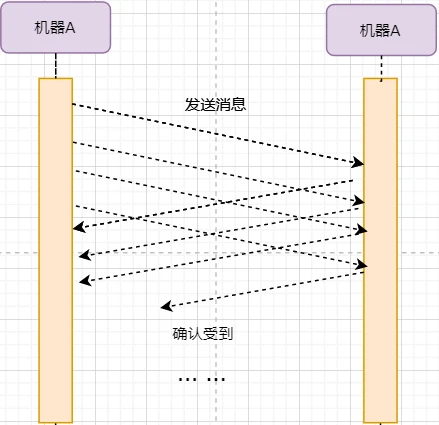 然后再来考虑一种情况:丢包。网络环境不可靠,导致每一次发送的数据包可能会丢失,如果机器A发送了数据包丢失了,那么机器B永远接收不到数据,机器A永远在等待。解决这个问题的方法是:超时重传。当机器A发出一个数据包时便开始计时,时间到还没收到确认回复,就可以认为是发生了丢包,便再次发送,也就是重传。