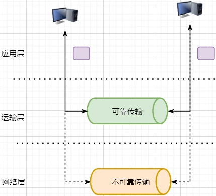 对于应用层来说,他就是一个可靠传输的底层支持服务;而运输层底层采用了网络层的不可靠传输。虽然在网络层甚至数据链路层就可以使用协议来保证数据传输的可靠性,但这样网络的设计会更加复杂、效率会随之降低。把数据传输的可靠性保证放在运输层,会更加合适。