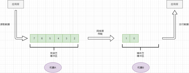 目标会读取字节并存放在自己的接收方缓冲区中,并在合适的时候交付给应用层;