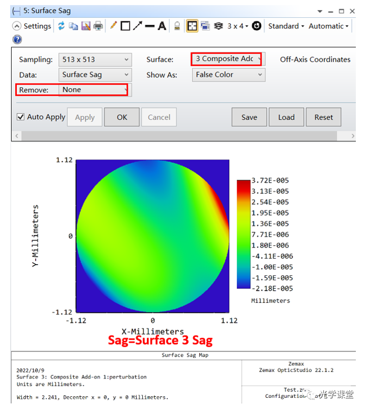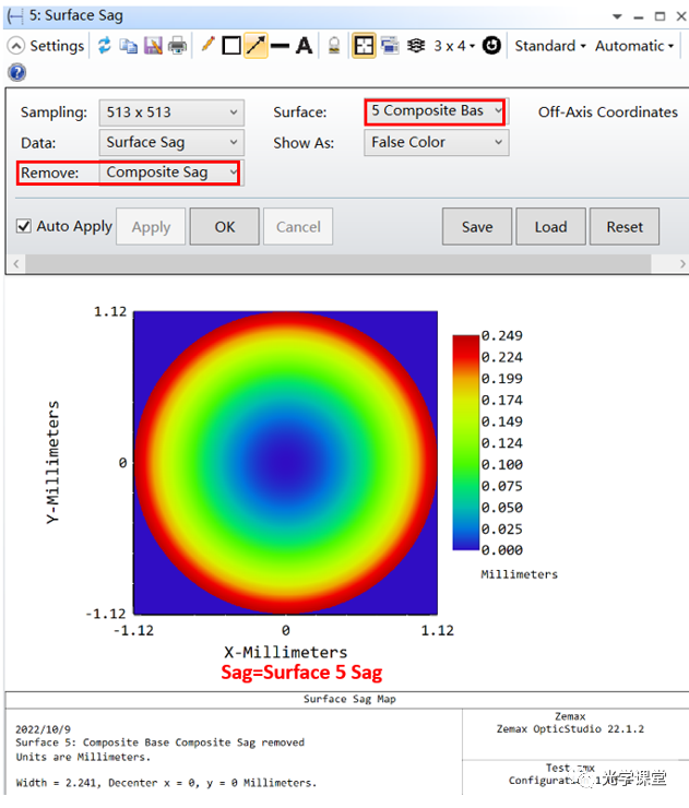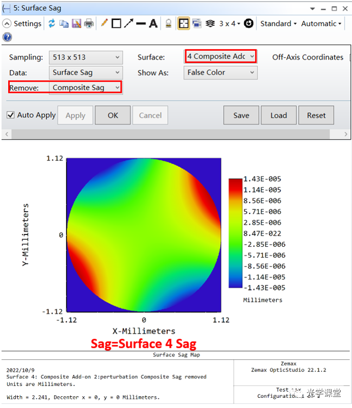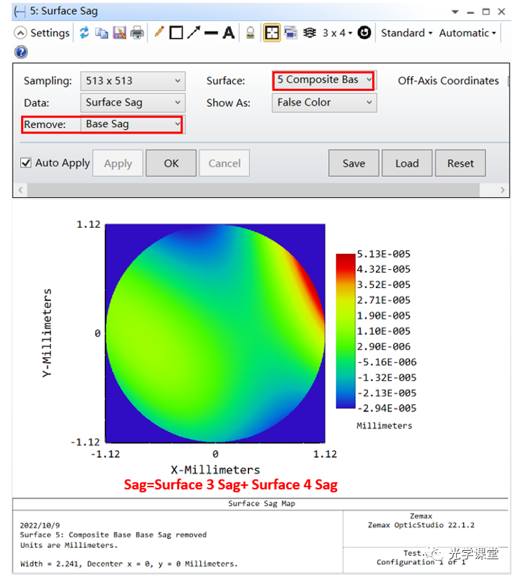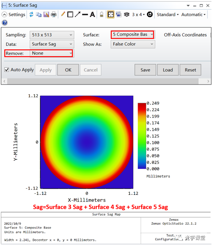 如果想查看单独的矢高,需要选中 “Remove Composite Sag”,或 “Remove Base Sag“