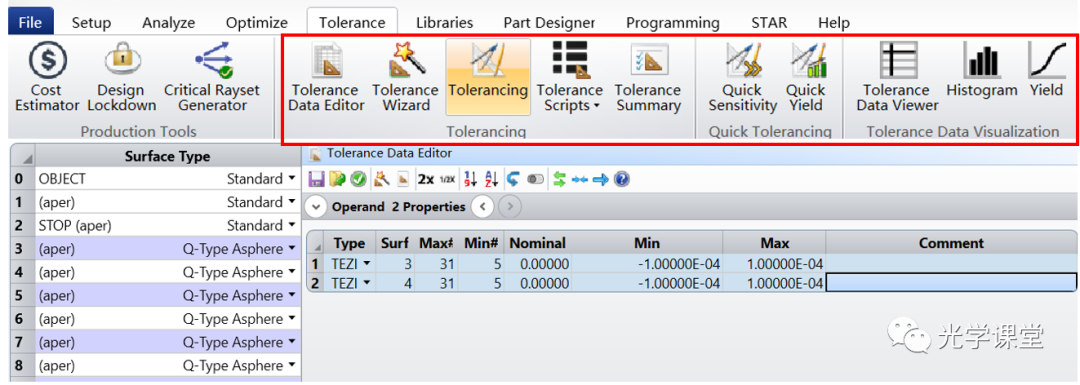 公差数据编辑器(TDE)为手机镜头的表面3和4增加了TEZI操作数。以前,Q型非球面类型不能直接用EZI,但现在不仅可以,还可以使用其他公差功能,如图14所示。