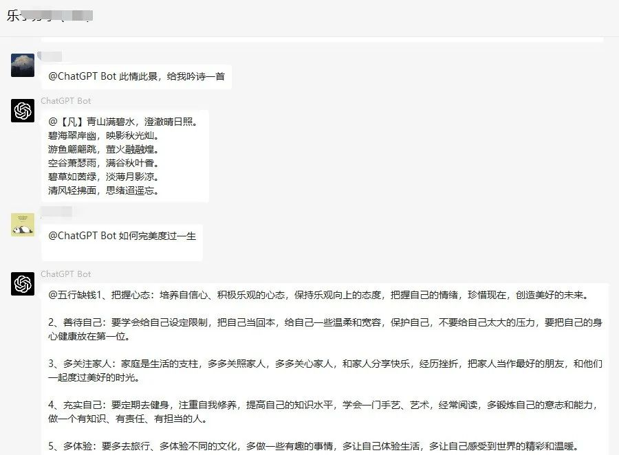 来看效果,ChatGPT就出现在普通的微信对话框里,有问必答: