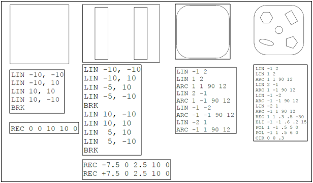 REC:圆弧关键字 cx cy:矩形中心坐标 xhw yhw:长宽 angle:角度 |