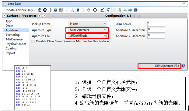 以操作手册中的复杂自定义光阑为例,具体操作如下图所示: