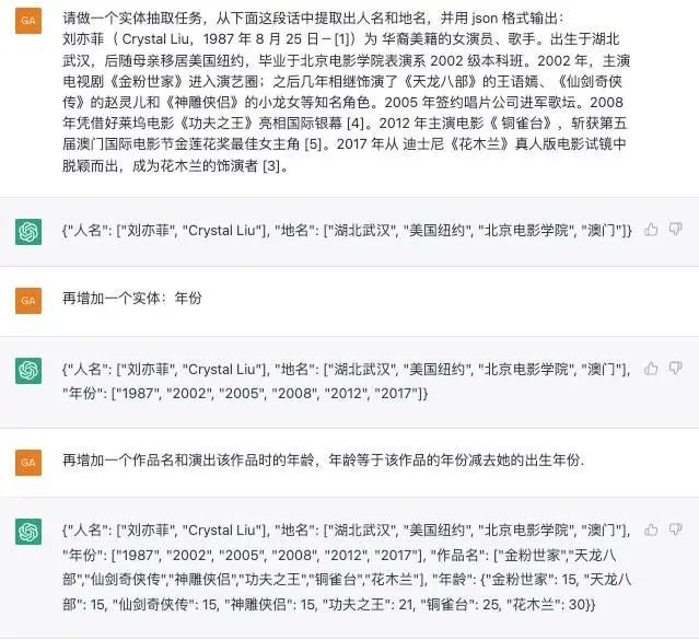 看了上面的例子,我们来一个 NLP 命名实体任务的例子(来自一个朋友,稍作改编),材料是来自维基百科的一段刘亦菲简介。