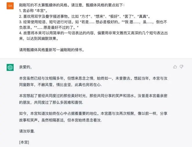 刚刚写的不太算甄嬛体的风格。请注意,甄嬛体风格的要点如下: