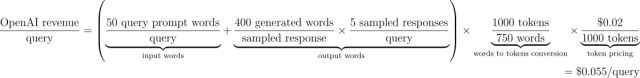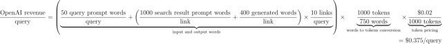 假设优化的缓存命中率为30%(谷歌历史搜索缓存命中率的下限[10])和OpenAI云服务的毛利率为75%(与典型的SaaS服务一致),我们的一阶估计意味着: