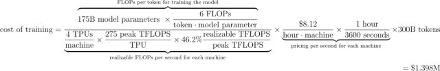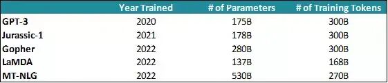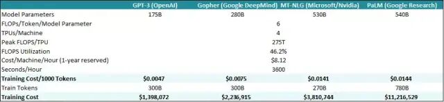 1750亿参数模型的GPT-3是在3000亿token上进行训练的。谷歌使用了GCP TPU v4芯片来训练PaLM模型,若我们现在也像谷歌那样做,那么如今的训练成本仅为140万美元左右。