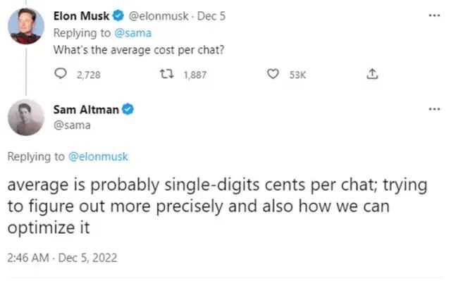 OpenAI首席执行官Sam Altman谈ChatGPT每次聊天的成本([推特](https://twitter.com/sama/status/1599671496636780546?lang=en)