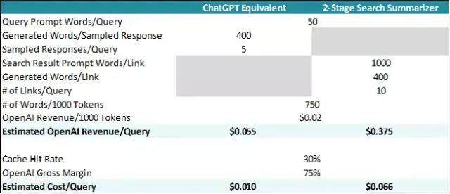 我们这里做了一些简单假设来估计将支付给OpenAI的搜索服务费用: