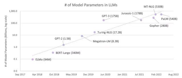 考虑到过去5年中模型参数呈指数增长,我们普遍猜测:下一代LLM模型很可能是万亿参数(密集激活)模型: