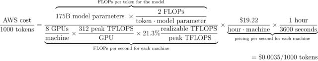 预估GPT-3通过云服务提供商 (AWS, GCP)每处理1000个token所需的推理成本