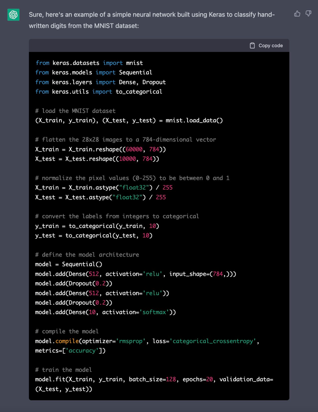 近日,一位机器学习领域的博主突发奇想,他决定让 ChatGPT 构建一个神经网络,使用 Keras 解决 MNIST 问题。