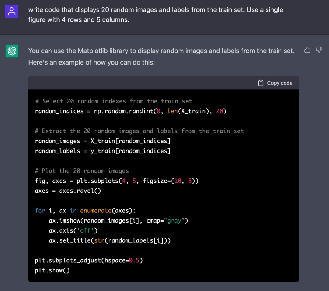 为了展示数据集中的一些示例,作者让 ChatGPT 编写代码来输出图像和标签的组合。这些输出的代码也很完美,附有 20 张图片的合集。