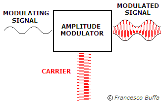 AM:Amplitude Modulation, 幅度调制,顾名思义,这种调制方式改变的是信号的幅度或者强度。幅度调制是第一种用于广播声音的调制类型。今天,其他形式的调制正被越来越多地使用,但幅度调制仍在广泛使用。