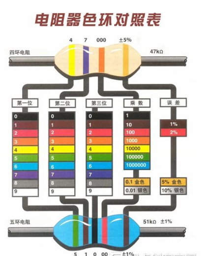 用色环或色点表示电容器的主要参数。电容器的色标法与电阻相同。