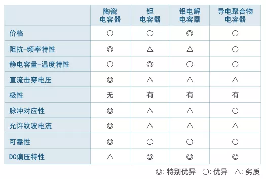 如下是村田给出的几种电容器的特性比较。