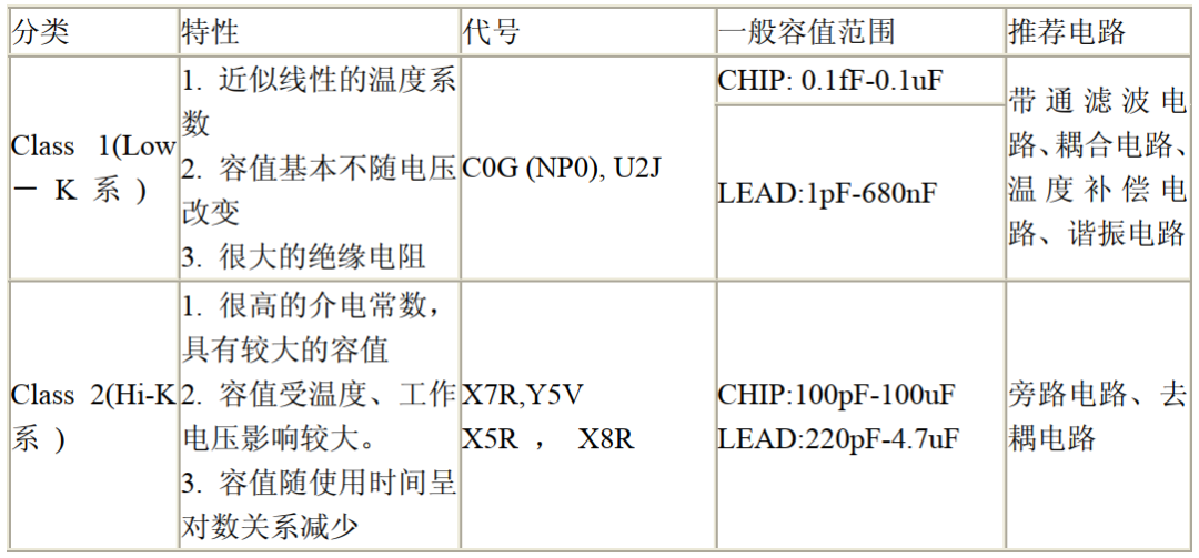 根据EIA和IEC推荐的标准,陶瓷电容可以被分为两类,Class1和Class2,我们常用的X5R和X7R都是属于Class2;