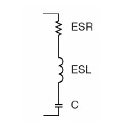 理想的电容器在实际中是不存在的,电容的实际模型是一个ESR串联一个ESL,再串联一个电容,ESR是等效串联电阻,ESL是等效串联电感,C是理想的电容。