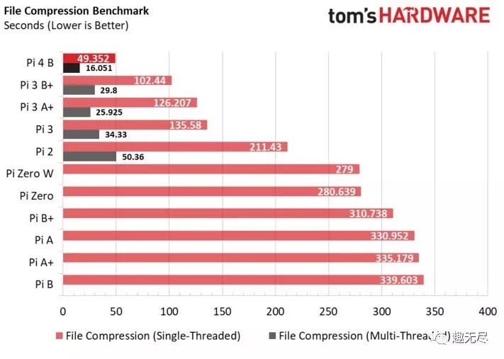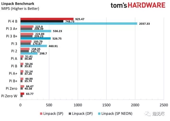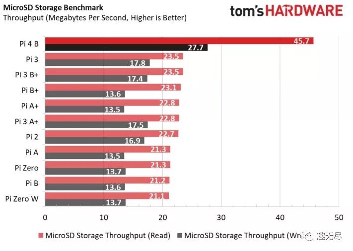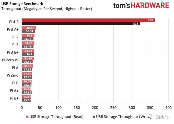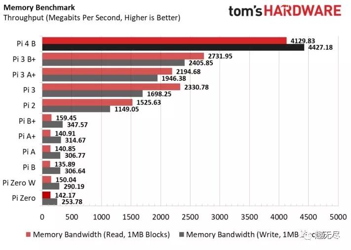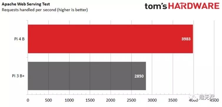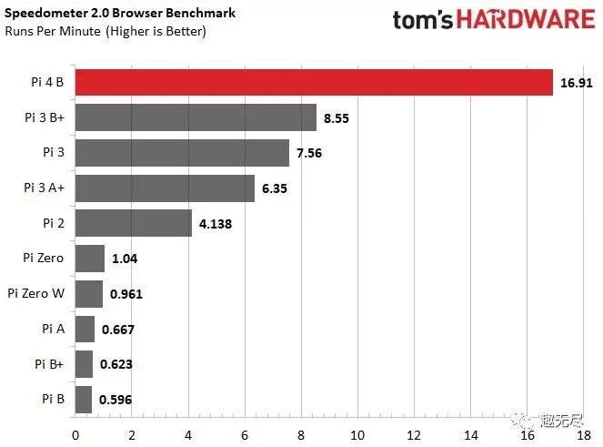树莓派4B性能评测报告 下面引用 tomshardware.com 给出的树莓派4评测报告。全方位测试了新一代树莓派的硬件性能并和老版本做了对比。测试中所用的树莓派为 4G 内存版本。 出处:https://www.tomshardware.com/reviews/raspberry-pi-4-b,6193.html