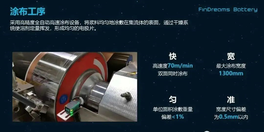 涂布工艺:电池长96cm,支持最大宽度达130cm,双面同时涂布,单位面积涂敷重量偏差小于1%。