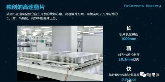 刀片电池设计的叠片速度在0.3s/pcs(这是业界最高水平)。
