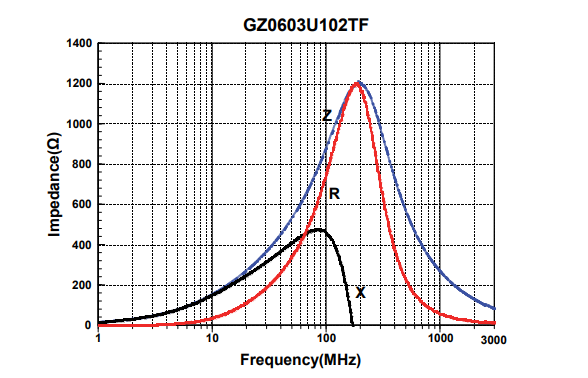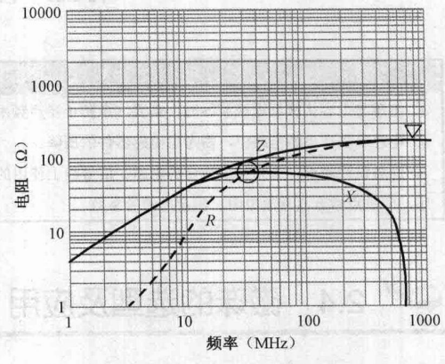 电抗成分以X表示,电阻成分以R表示,其整体特性用R和X合成的阻抗Z的频率特性表示: