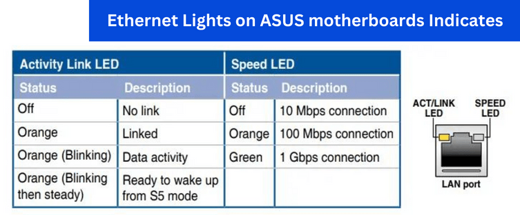 ASUS主板上的网口通常有两个灯(可能因型号而异)。一个灯闪烁,而另一个保持静态。