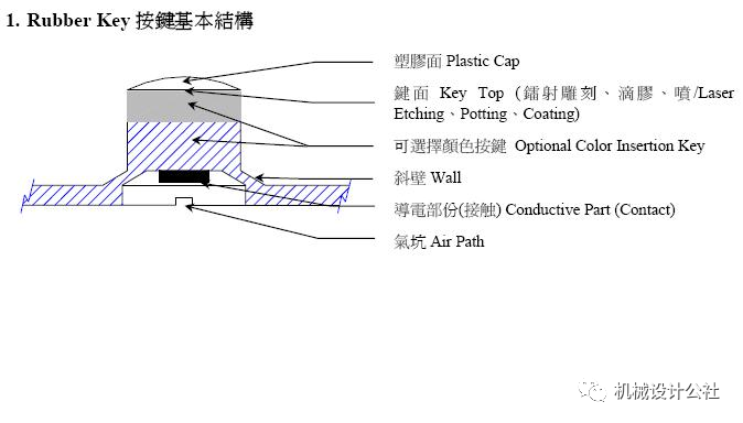 Rubber Key 按键基本结构 塑胶产品的设计涉及面非常广泛,实际中会碰到各种各样的形状和结构形式,涉及到的知识有:材料选择、模具结构与产品的关系、注塑成型所引起的外观缺陷、壳体之间的配合、壳体之间的连接以及某一功能而设计的结构等等. 作者:极客石头 在搞事情的路上越走越远。 查看极客石头的所有文章。