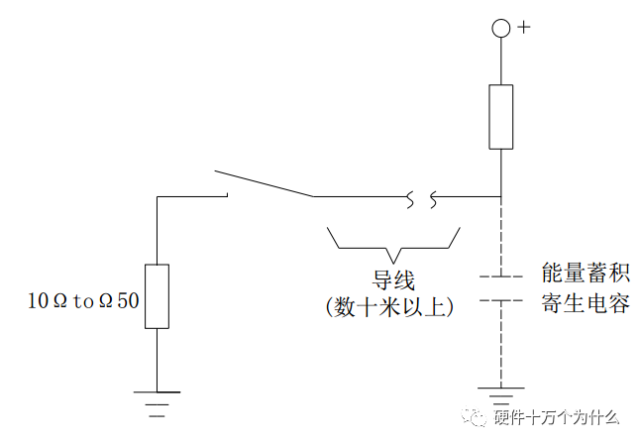 在继电器触点电路中,使用数十米以上的长导线时,由于导线内有寄生电容量存在,会产生冲击电流,请在触点电路上串联电阻(约 10Ω~50Ω),如图5。
