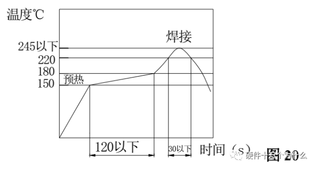 图 20 显示了红外线回焊时印制板板面的温度曲线,但各继电器的条件可能会有所不同,因此请参阅各继电器的说明书,如果说明书中没有声明,可以使用图示温度曲线。
