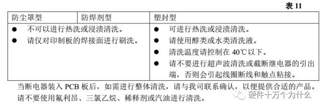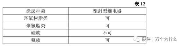 表面处理剂的温度请不要超过继电器最高的使用温度,而且请在继电器冷至常温时,才能喷涂表面处理剂。关于涂层有以下建议,见表 12.