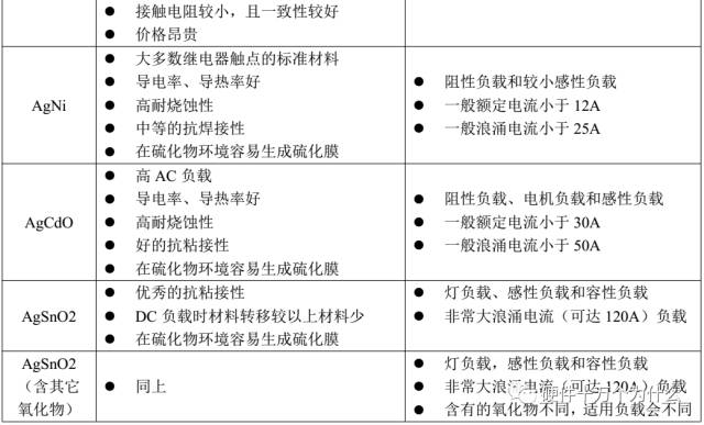 对于同一款继电器,不同的触点材料所适用的负载种类或范围略有不同。见表 3。