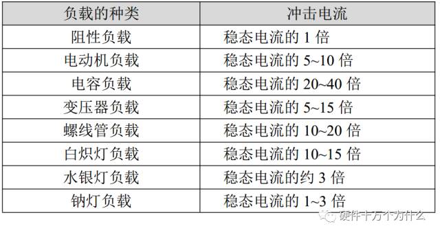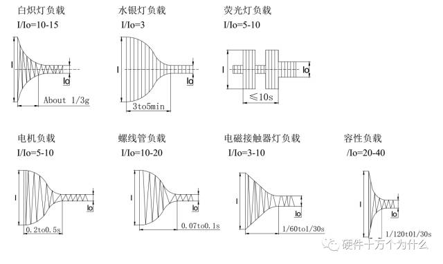 接通电动机、电容、螺线管或灯的负载时,会引起数倍于稳态电流的冲击电流。