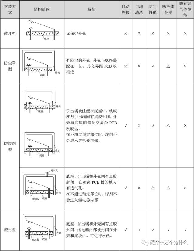 为了保证继电器的可靠性,不同的封装方式对继电器的后加工有不同的要求,见表 4