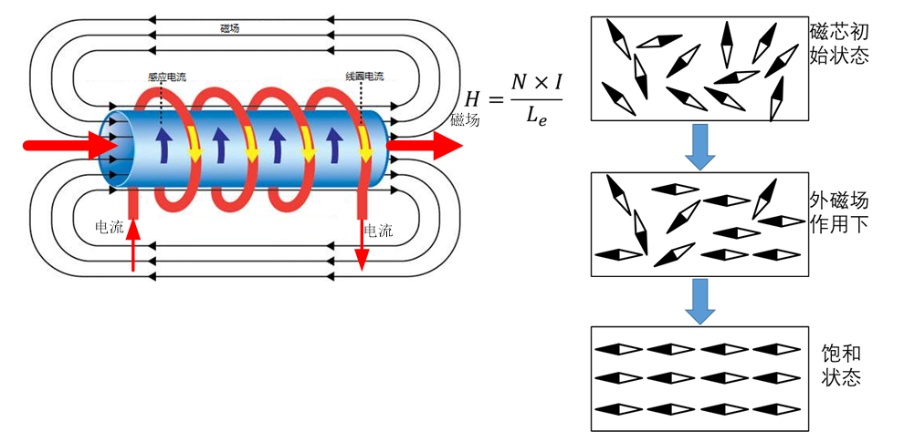 磁芯在磁场的作用下会被磁化,其内部磁畴会慢慢旋转;