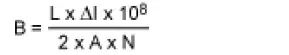 这里,B 是峰值磁通密度(高斯),L 是线圈电感(亨),ΔI 是电感纹波电流峰峰值(安培),A 是磁芯横截面积(cm2),N 是线圈匝数。