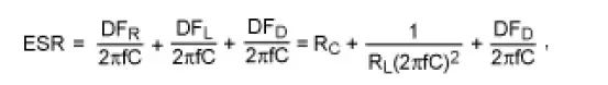 推算电容阻抗模型、计算ESR (结果的实部)时,ESR 是频率的函数。这种相关性可以在下面简化的ESR等式中得到证明: