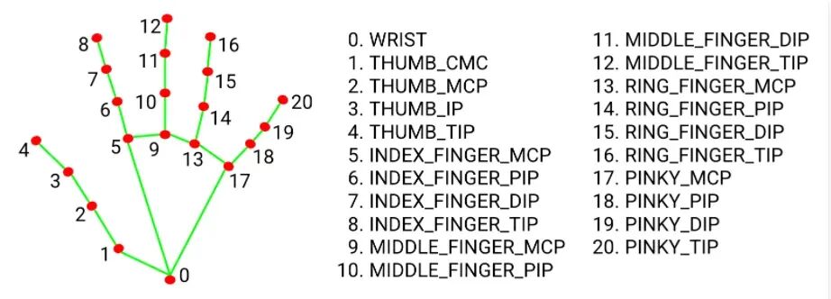 l1, l2 = hand[16] # the same logic used to track landmark 0 applies here