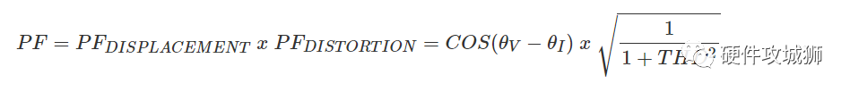 位移因数和失真因数的乘积得出了功率因数,用公式(4)计算: