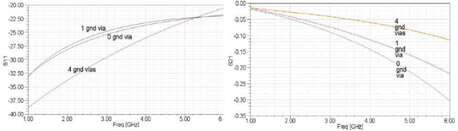 接地过孔的数量是不是越多越好呢?在一定频率的信号传输通路,几个接地过孔就足够了呢?为了弄清楚这些问题,需要对接地过孔的数量进行仿真,仿真结果如下图所示。