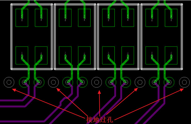 给传输线上的信号过孔配置相邻的接地过孔,主要有两个好处:一是给信号过孔承载的信号提供良好的信号回流通路;二是通过接地过孔消除信号之间的电磁场辐射。