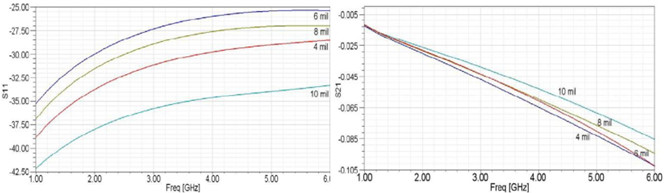 为了明确接地过孔孔径大小对信号传输质量的影响,进行的仿真结果如下图所示。