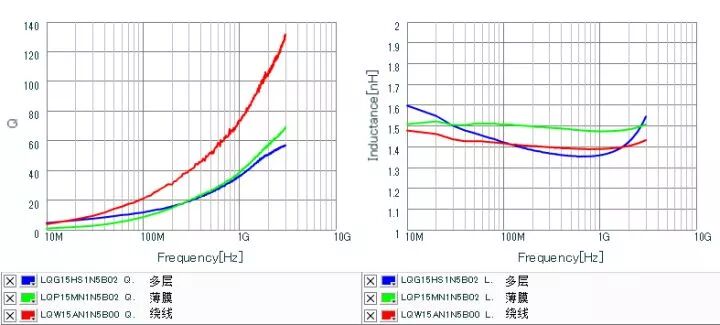 Murata有三种工艺的高频电感,选择了同感值(1.5nH)、同封装、同容差的电感对比。