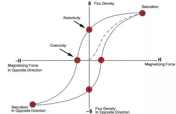 增加磁芯的磁导率,可以提高电感值,通常使用铁磁性材料做磁芯。铁磁性材料存在磁饱和现象,即当磁场强度超过一定值时,磁感应强度不在增加,即磁导率下降了,也就是电感下降了。在额定电感值范围内,允许的最大电流即为饱和电流。