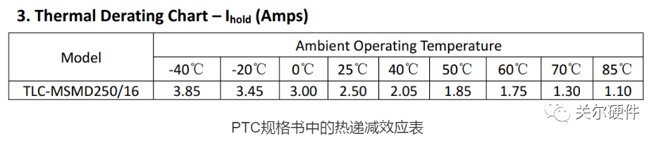 不同工作环境下的不动作电流如下图所示,温度越高Ihold电流越小。