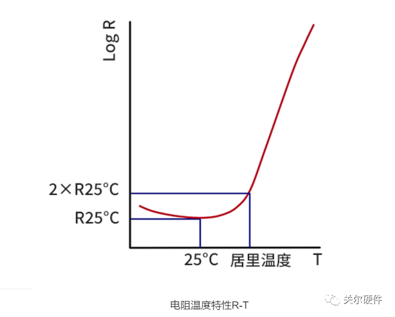 当阻值开始呈现阶跃性增加时的温度称为开关温度,即当阻值升至2倍最小电阻值(Rmin)时所对应的温度,也称居里温度(即conformance requirement的2xRmin Tsw值)。