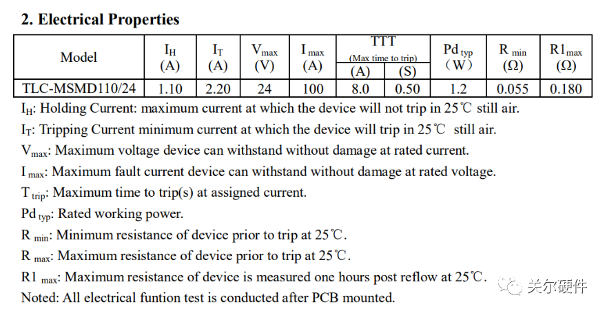 7、零功率电阻值Rmin,Rmax:在常温25°下,未动作电流时,测试的电阻值。
