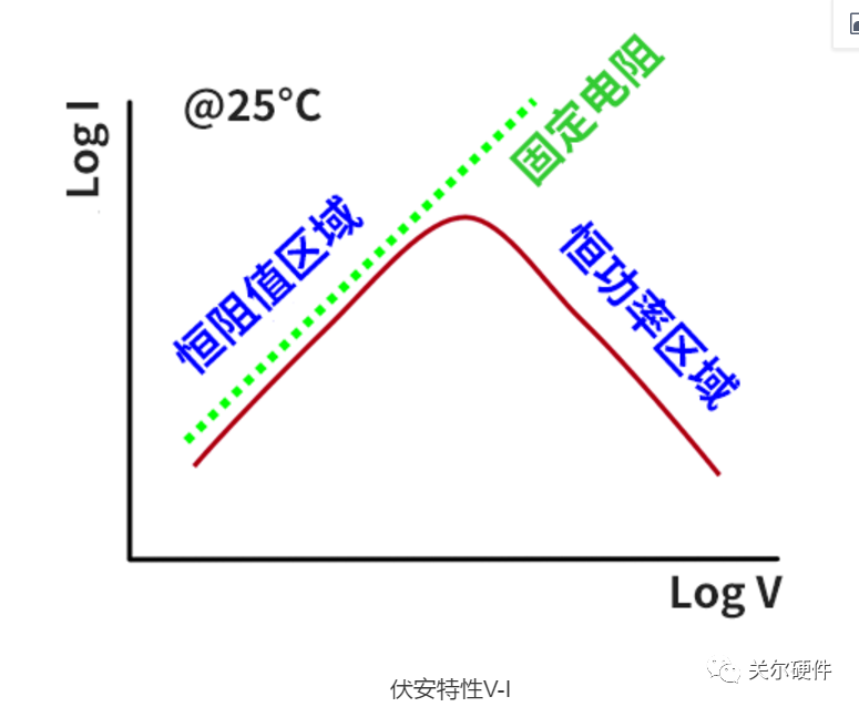 在低温范围内,POSISTOR和固定电阻一样遵循欧姆定律。然而,当由于自发热温度上升时,POSISTOR的阻值上升,流经它的电流会随着电压的增加而减小。此时功率恒定。