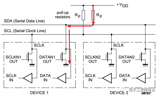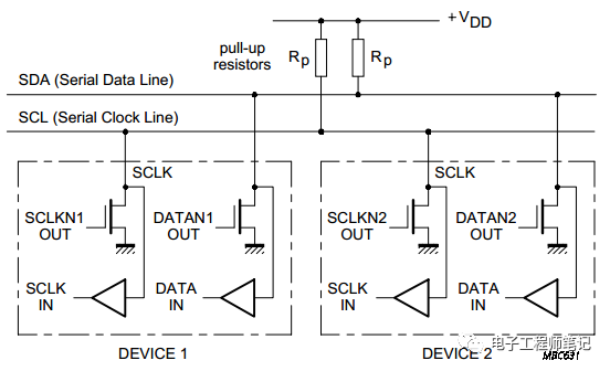 I2C总线是微电子通信控制领域中常用的一种总线标准,具备接线少,控制简单,速率高等优点。在I2C电路中常见的上拉电阻有1k、1.5k、2.2k、4.7k、5.1k、10k等等,但是应该如何根据开发要求选择合适的阻值呢?下图为I2C内部结构
